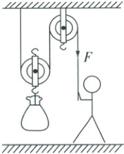 2. (2023 河南) 如图所示,在$200\ N$的拉力$F$作用下,用滑轮组将重为$300\ N$的货物匀速提升,在$20\ s$内货物竖直上升了$2\ m$。不计绳重及滑轮上的摩擦。下列说法正确的是 (