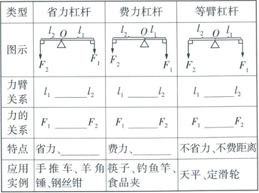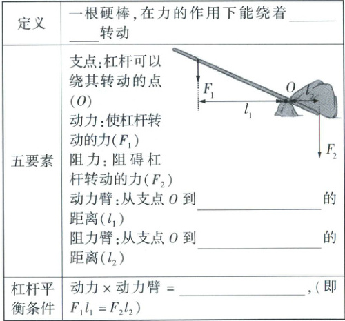 1.固定点 动力 $F_1$ 作用线 阻力 $F_2$ 作用线 阻力×阻力臂