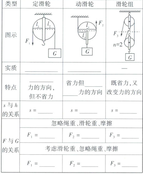 4.等臂杠杆 省力杠杆 改变 不改变 h 2h 2h G