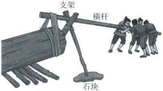 8.(教科版八下 P110 本章复习题 2 题改编)如图是我国古代劳动人民运送巨木的场景,通过杠杆、支架、悬绳、石块等,将巨木一端抬起,垫上圆木,将其移到其他地方。下列说法正确的是 (