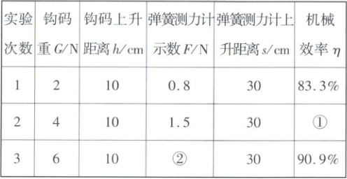 拉动弹簧测力计,并用刻度尺测出物体上升的高度。(2)表格中编号①处的数据为
