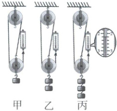 $N$(观察图丙)。(3)分析数据可得结论:使用同一滑轮组,提升的物重越大,滑轮组的机械效率越