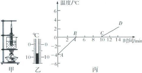 $^{\circ}C$。(2) 在碎冰中插入温度计时,应使温度计的玻璃泡位于碎冰的