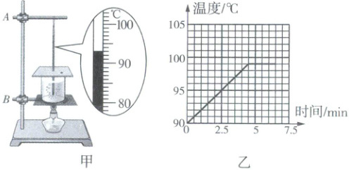 $ ^{\circ}C $。(4) 图乙为某小组绘制的温度—时间图像,分析图像可知水沸腾时温度变化的特点是