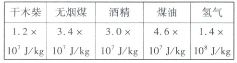 11. (人教版九年级 P30 图 14.3 - 1) 如图所示是几种不同的燃料在燃烧,下表列出了几种燃料的热值。