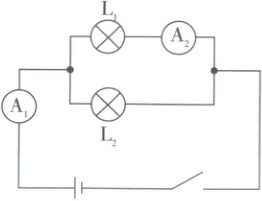 6. (人教版九年级 P63 图 15.5 - 8 甲改编)小明按图所示的电路图正确连接电路,灯 L₁、L₂ 均标有“3.8 V 0.3 A”字样。闭合开关,L₁ 发光,电流表 A₁ 和 A₂ 示数均为 0.3 A。你认为出现上述现象的原因是