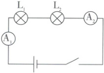 5. (人教版九年级 P62 练习与应用图 15.5 - 5 改编)探究串联电路中各处电流的关系的实验电路如图所示。实验时电流表 A₁ 和 A₂ 的示数分别为 0.2 A 和 0.18 A,造成两个电流表示数不同的原因可能是 (