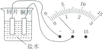 7. (人教版九年级 P70 练习与应用 1 题改编)在烧杯中加入盐水,将铜片和锌片放在盐水中,就是一个自制电池。它可以将化学能转化为