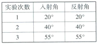 。实验数据如下表,写出由数据可以得出的一条规律:反射角等于入射角(或反射角随入射角的增大而增大)