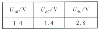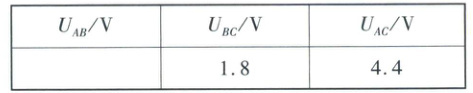 $V$。接着,再分别测出$BC$、$AC$间的电压并记录在下表所示的表格中,分析实验数据得出结论:串联电路中,$U_{AC}=U_{AB}+U_{BC}$