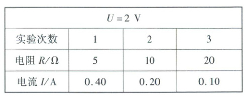 (4)小明继续用该电路探究“电流与电阻的关系”,将$5\ \Omega$的定值电阻更换成$10\ \Omega$、$20\ \Omega$的定值电阻分别接入电路中,调节滑动变阻器的滑片保持