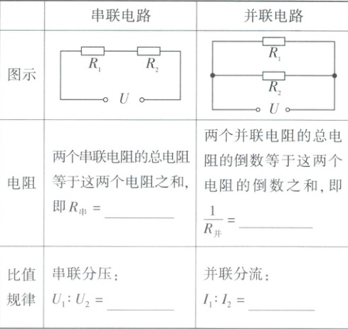 $R_{1} + R_{2}$ $\frac {1} {R_{1}} + \frac {1} {R_{2}}$ $R_{1}∶R_{2}$ $R_{2}∶R_{1}$