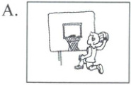 A. 接到球 B. 跳得高 C. 投球 D. 跑向篮球框 E. 一场篮球比赛