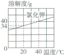 (填“饱和溶液”或“不饱和溶液”)。将40 ℃时氯化钾的饱和溶液降温至20 ℃时,此时溶液的质量分数为$\frac {34g} {100g+34g}$×100%
