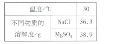 、过滤、洗涤。(2)1000 g海水中含有26.7 g $NaCl$、3.3 g $MgSO_4$。在30 ℃时,为从1000 g海水中获得