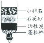 例1 某同学收集了雨后浑浊的河水,进行如下实验:将浑浊的河水通过简易净水器装置(如右图)。图中小卵石、石英砂和蓬松棉的作用是