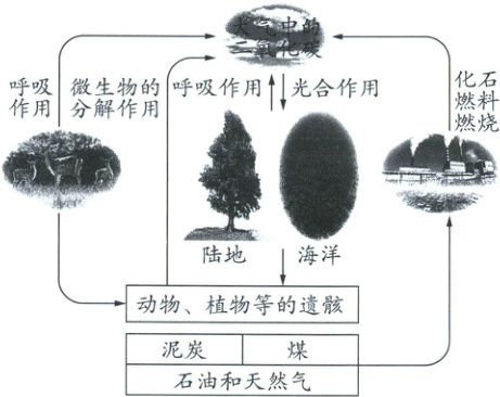 碳循环是通过含碳物质和CO_2的相互转化来实现的(如下图)。