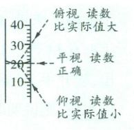 保持水平。(4) 关于量筒仰视与俯视的问题——用量筒量取一定量的液体时,若仰视读数,则量取液体的体积偏大;若俯视读数,则量取液体的体积偏小。