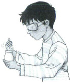 (6) 酸液或碱液溅入眼里:切不要用手揉眼睛,应立即用水冲洗,必要时请医生治疗。