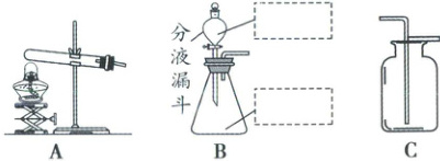 (2)若利用 B 制取$\mathrm{CO_{2}}$,请将开始时所加的试剂分别填写在图中相应的虚线框内。