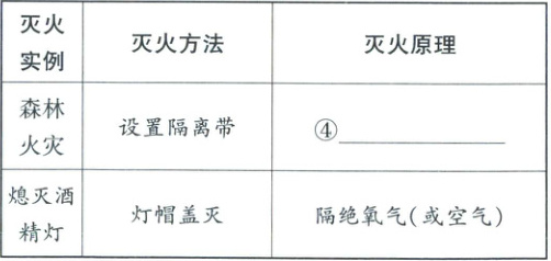5.①让油与空气隔绝 ②隔绝氧气(或空气),使温度降到着火点以下 ③使温度降到着火点以下 ④隔离可燃物