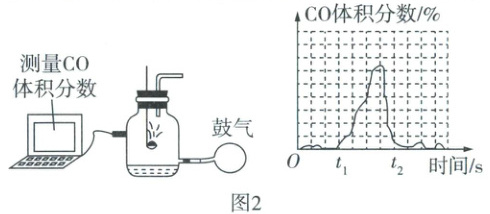 。(3)【新考法 数字化实验】小组同学通过一定手段,测得焚烧垃圾产生的气体中CO体积分数变化如图2,t₁~t₂时间段内CO体积分数出现异常的原因是