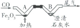 21.(2020 河南 18 题)如下图为$\mathrm{CO}$还原$\mathrm{Fe_2O_3}$的微型装置图。则$\mathrm{A}$处$\mathrm{V}$形管内的固体粉末由