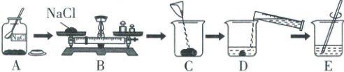 mL量筒。2. 操作B中称量$\mathrm{NaCl}$时,应该先在左右托盘各放