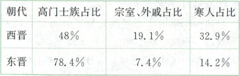 项;材料未涉及皇权强弱问题,只涉及两晋时期参与中央决策的官员出身的变化,排除D项。