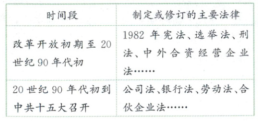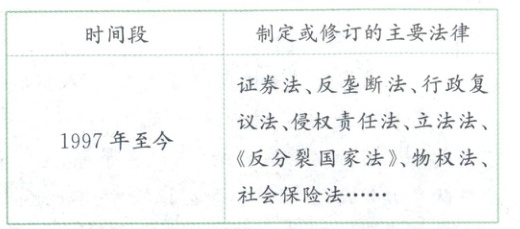 主要成就:形成了以宪法为核心的包括民法、行政法、刑法、经济法等在内的中国特色社会主义法律体系。