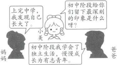 1.C 【解析】根据题干描述可知,从爸爸、妈妈的回答中,小美能感悟到初中阶段对我们的人生具有独特的价值,C正确;AB说法正确但题干没有体现;“最重要”说法太绝对,D说法错误。故选C。