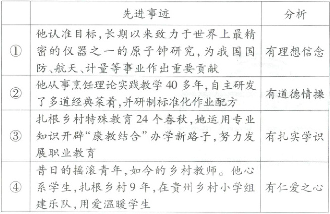 10. 为庆祝第39个教师节,同学们展示了中央宣传部、教育部发布2023年“最美教师”先进事迹,并进行了分析。下列分析正确的是(