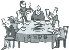 材料二:漫画《家庭聚餐》:家庭聚餐的饭桌上,老人多次想跟孩子们说说话,但孩子们都抱着手机聊天,老人受到了冷落。