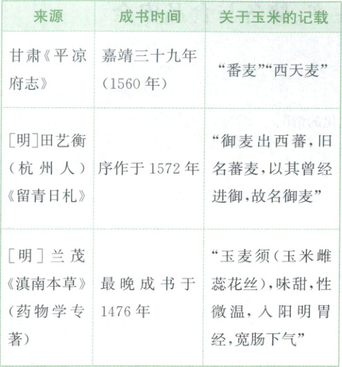 C.《留青日札》说明玉米成为仅次于小麦的粮食作物