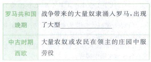 (1)特点:众多奴隶或农奴在庄园的土地上进行集中劳作,劳动者被束缚在土地上,生产力低下。