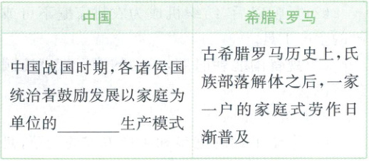 1.提示:以家庭为生产单位,农业和手工业相结合,男耕女织,自给自足。
