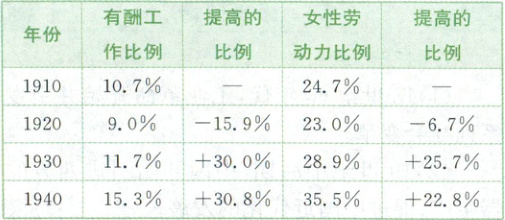 3. 下表为1910—1940年美国已婚妇女工人就业比例状况。这反映出当时美国 (