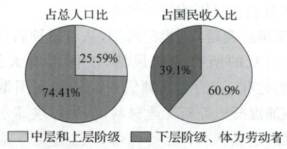 4. 下图是1867年英国不同阶层家庭在总人口和国民收入中的占比图。这一局面形成的原因是英国 (