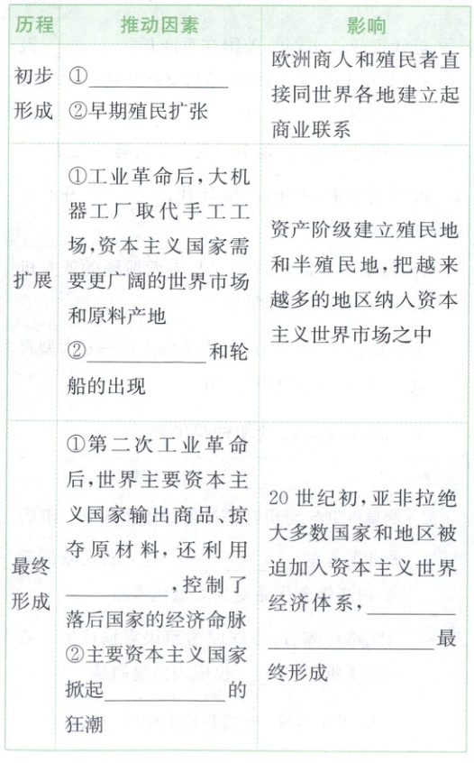 新航路开辟 蒸汽机车 资本输出 瓜分世界 资本主义世界市场