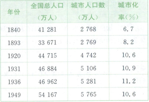 材料 近代中国城市人口总数及城市化率