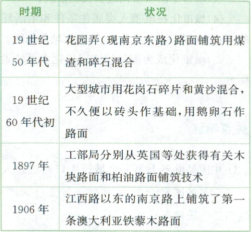 5.B 解析:材料呈现了鸦片战争后几个历史时期城市路面建设的情况,属于城市基础设施,故选B项;材料只是体现城市道路建设,不能说多样化,排除A项;城市路面建设只是城市基础设施建设之一,仅此一项看不出生活条件的改善,排除C项;新型城市经济功能突出不符合材料的主旨,排除D项。