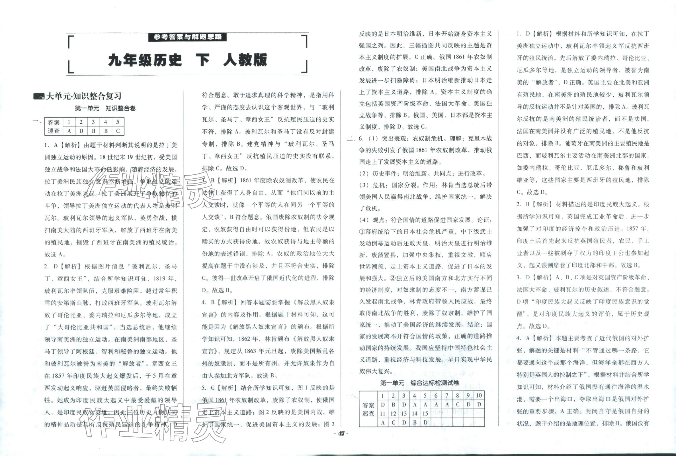 注:目前有些书本章节名称可能整理的还不是很完善,但都是按照顺序排列的,请同学们按照顺序仔细查找。练习册 2026年单元加期末复习与测试九年级历史下册人教版 答案主要是用来给同学们做完题方便对答案用的,请勿直接抄袭。