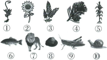 3.(7 分)下图是几种常见的植物和动物,据图回答问题: