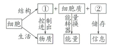 8.C 【解析】A.结构①能控制物质进出,是细胞膜;细胞壁起支撑和保护作用,A错误;B.结构②细胞核内含有遗传物质,是细胞生命活动的控制中心,是遗传信息库,细胞核控制着生物的发育和遗传,B错误;D.叶绿体作为能量转换器能将光能转化为化学能储存在有机物中;线粒体是呼吸作用的场所,能将有机物储存的能量释放出来供生命活动利用,D错误。故选C。