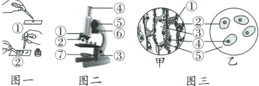 (2)李明发现视野中有一个污点,移动装片时发现污点未移动,为了进一步判断污点的位置,他优先调节的结构是图二中的(填标号)_______;该显微镜有10×、15×两个目镜,10×、40×两个物镜,则这台显微镜的最高放大倍数为_______倍。