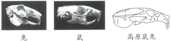 B.根据三种动物的头骨可判断高原鼠兔与兔的亲缘关系更近