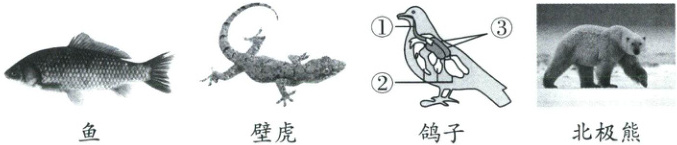 可辅助呼吸。每呼吸一次,肺部进行两次气体交换。(4)北极熊是哺乳动物,它们的体温都是