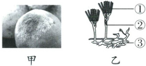 23. 如甲图所示,青霉菌可在果皮上生长和繁殖,请回答: