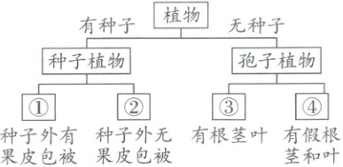 10. 如图是小明建立的植物分类图,其中①~④各代表一种植物。下列对应关系中,不正确的是(