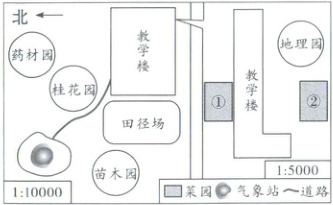 5. ①②菜园土壤质地及施肥浇水条件基本相同。发现同一品种的喜光蔬菜在②地长势较好,是因为这里位于教学楼